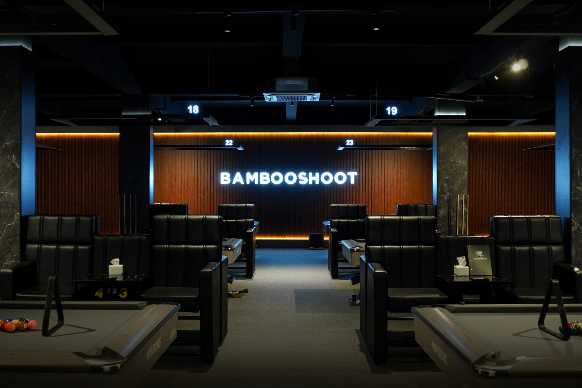 "New (as of spring 2025), clean, smokeless billiards hall. Roughly 23 8' Mr. Sung tables and one 8' top of the line Rasson table. Rates are reasonable and service is good. Cash, credit card and e-wallet payments accepted."